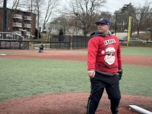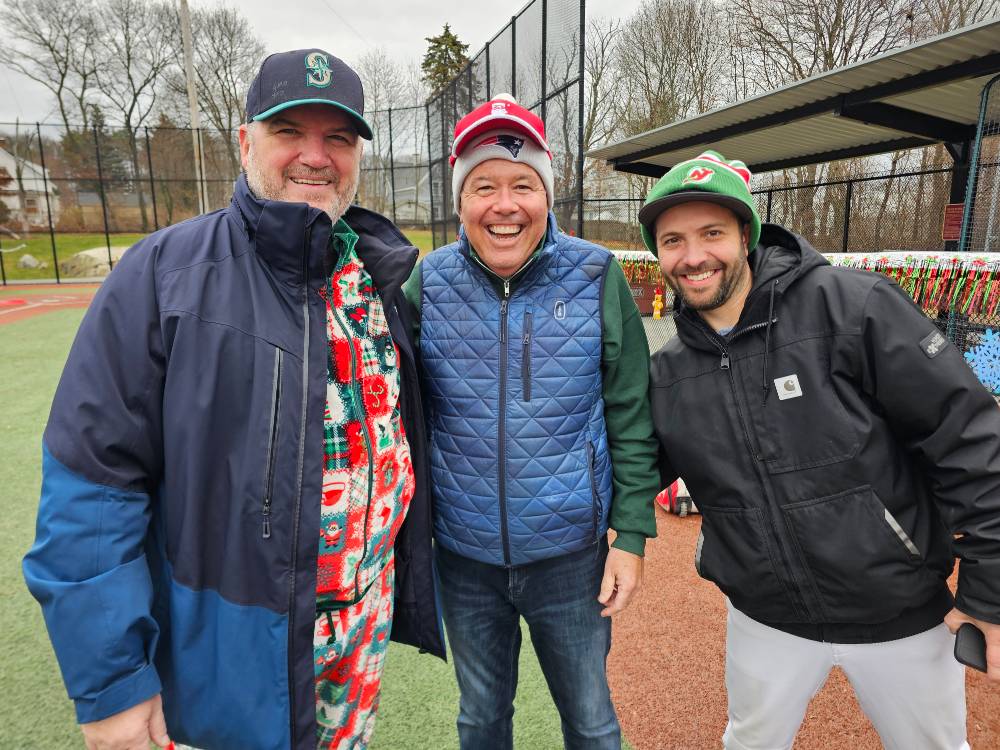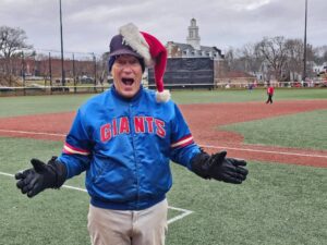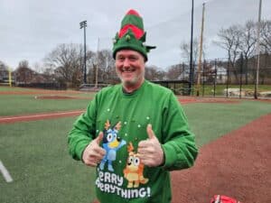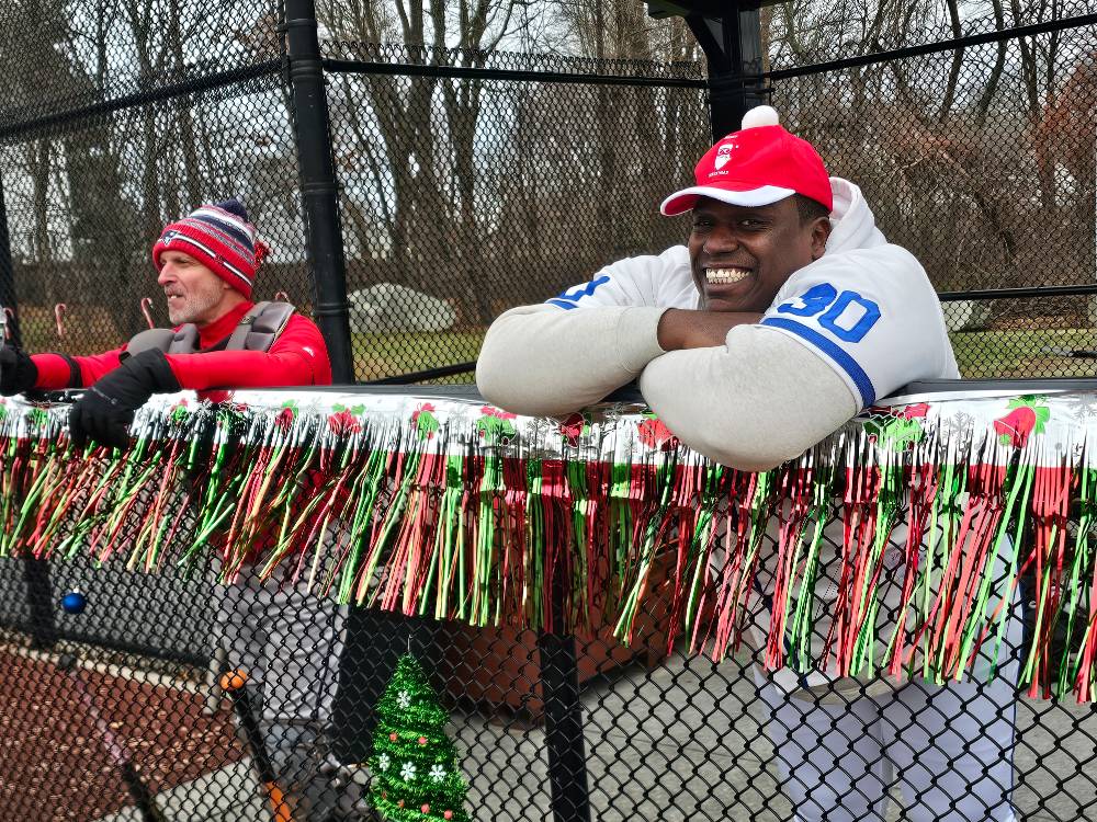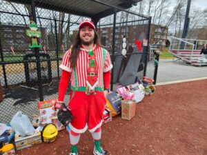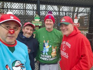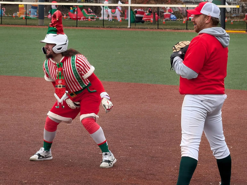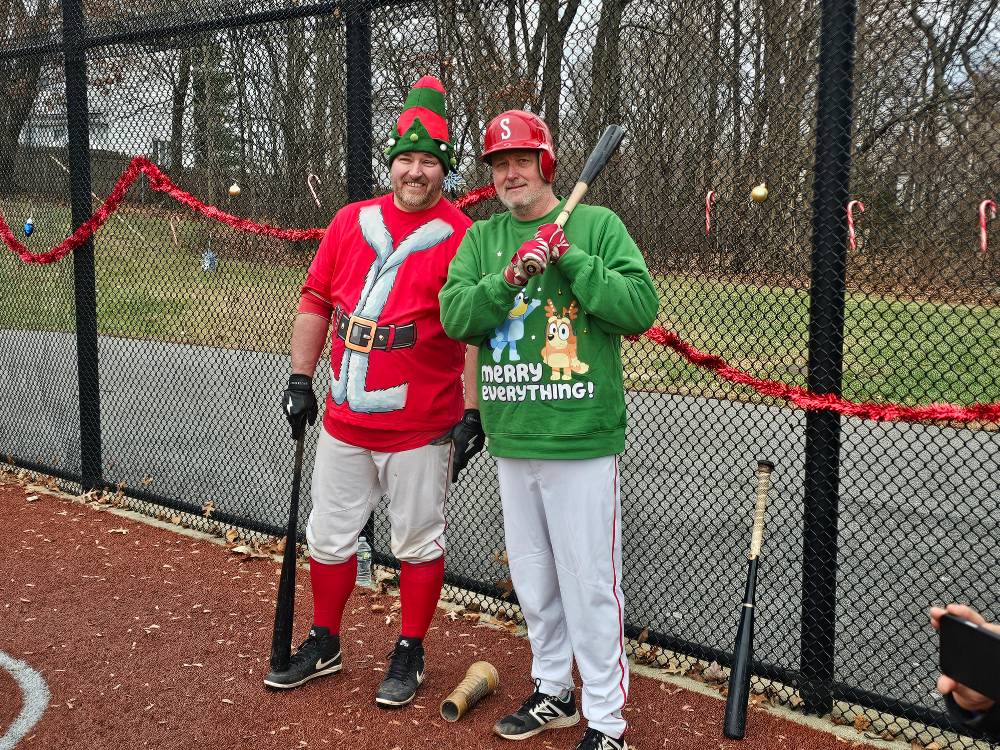 Photos from the game were as festive as expected during the most wonderful time of the year. We can’t thank our umpires enough – Phil Boardman, Curley Peterson, and Carl Rodriguez – who all donated their time (in addition to toys) for the cause!