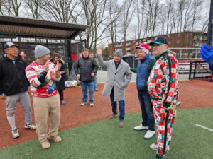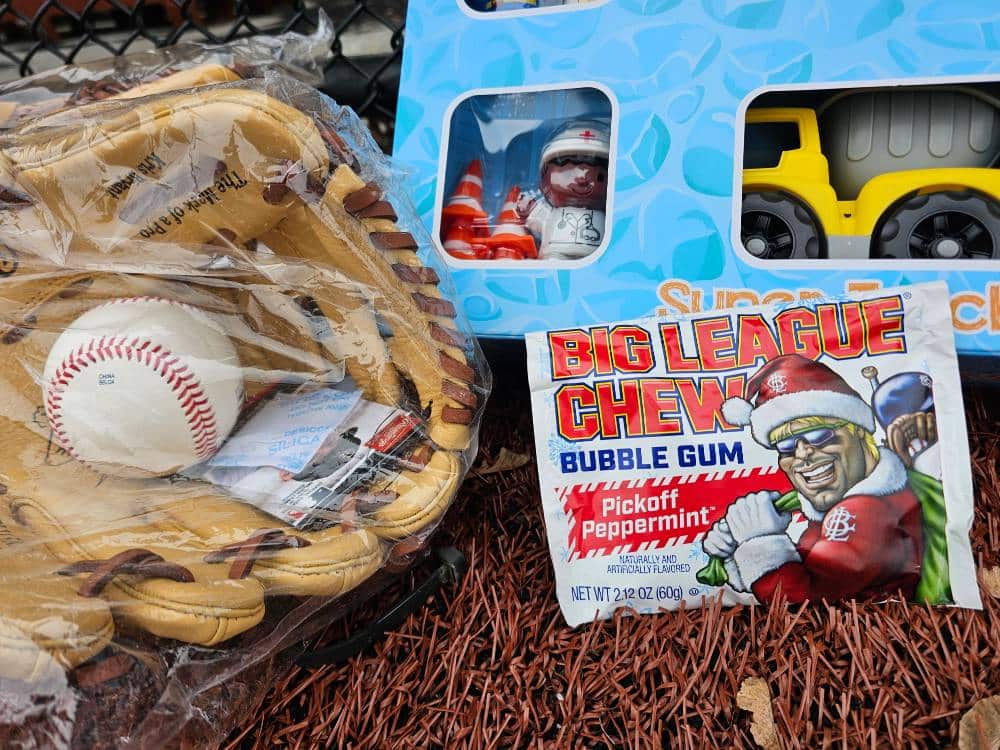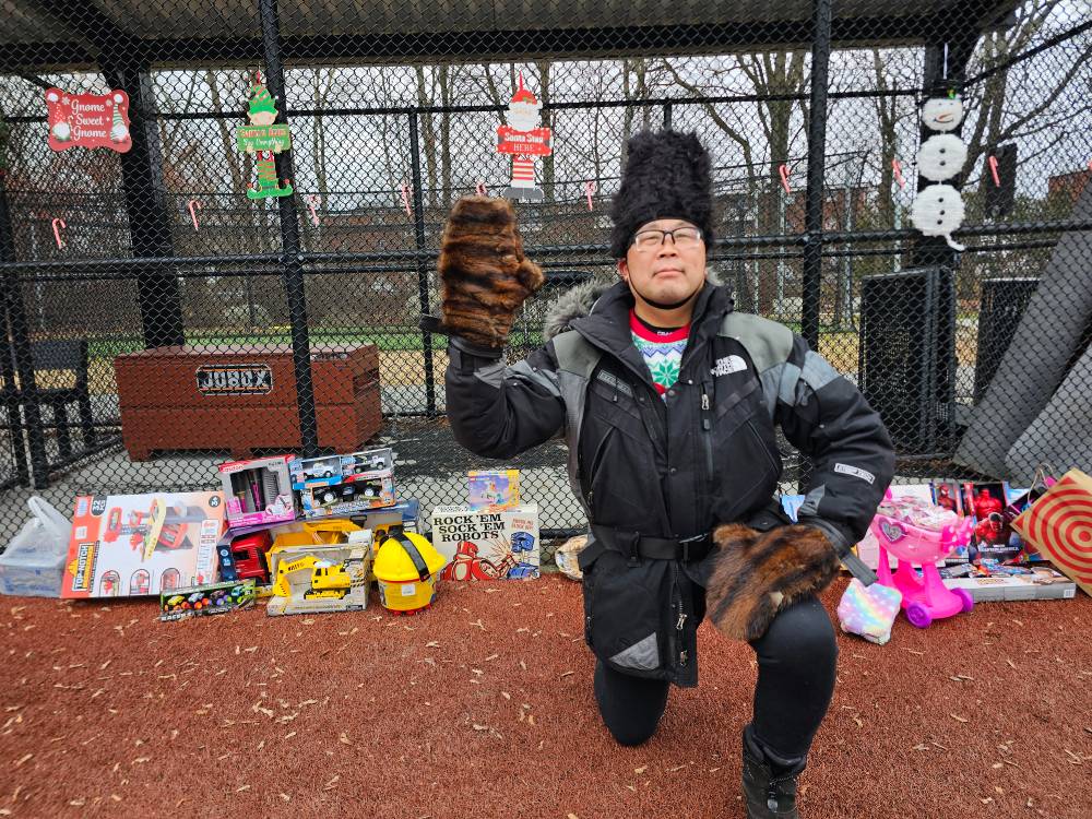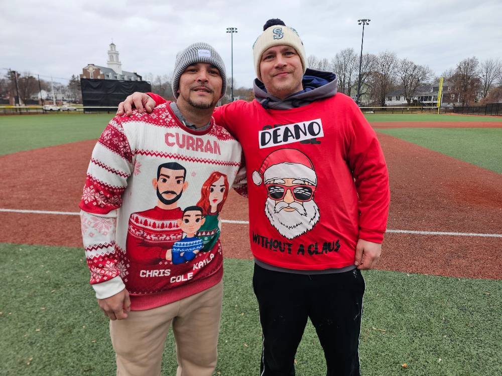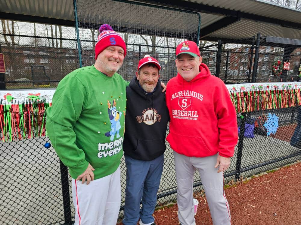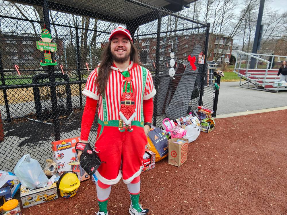 Photos from the game were as festive as expected during the most wonderful time of the year. We can’t thank our umpires enough – Phil Boardman, Curley Peterson, and Carl Rodriguez – who all donated their time (in addition to toys) for the cause!