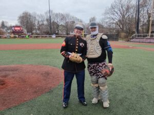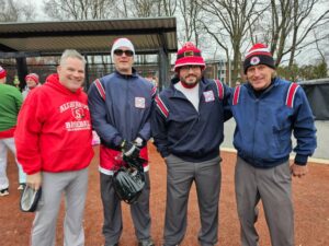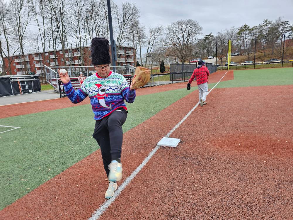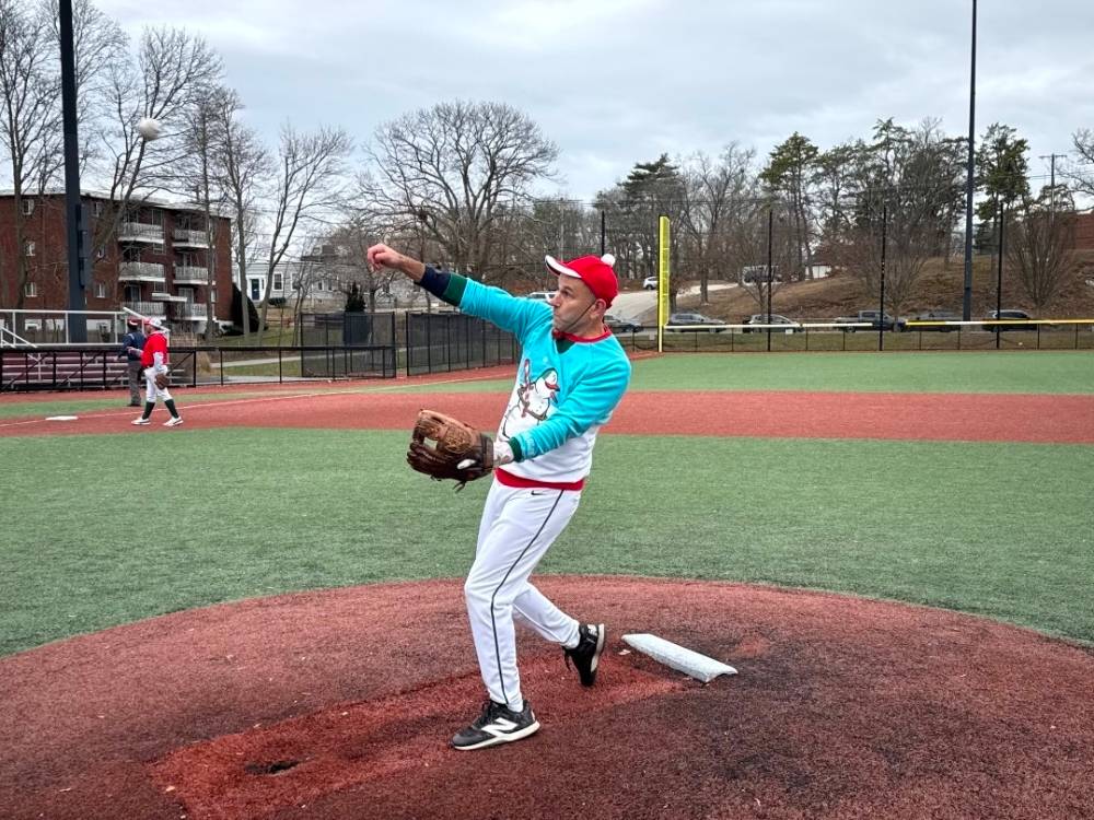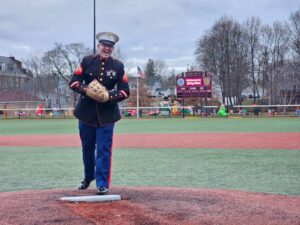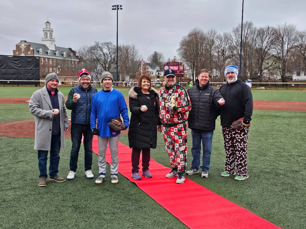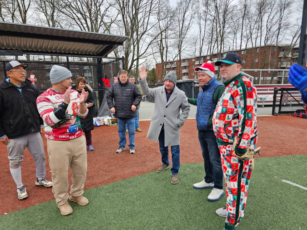 Councilor at Large Fred Happel, District 1 Councilor Kathy Rober Kelly, Weymouth Mayor Mike Molisse, and Massachusetts State Senator Patrick M. O’Connor threw out ceremonial first pitches at the 2025 Winterball game.