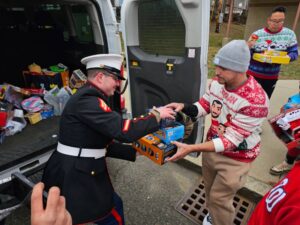 From the United States Marines and a former Toys for Tots recipient himself, Corporal Quinn braved the conditions to collect toys from children in need this Christmas.