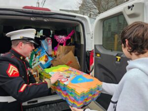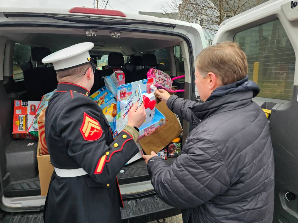 Event founder Brett Rudy introduced Corporal Quinn Sharrow of the United States Marines, who offered opening remarks based on his experience with the Toys for Tots program.